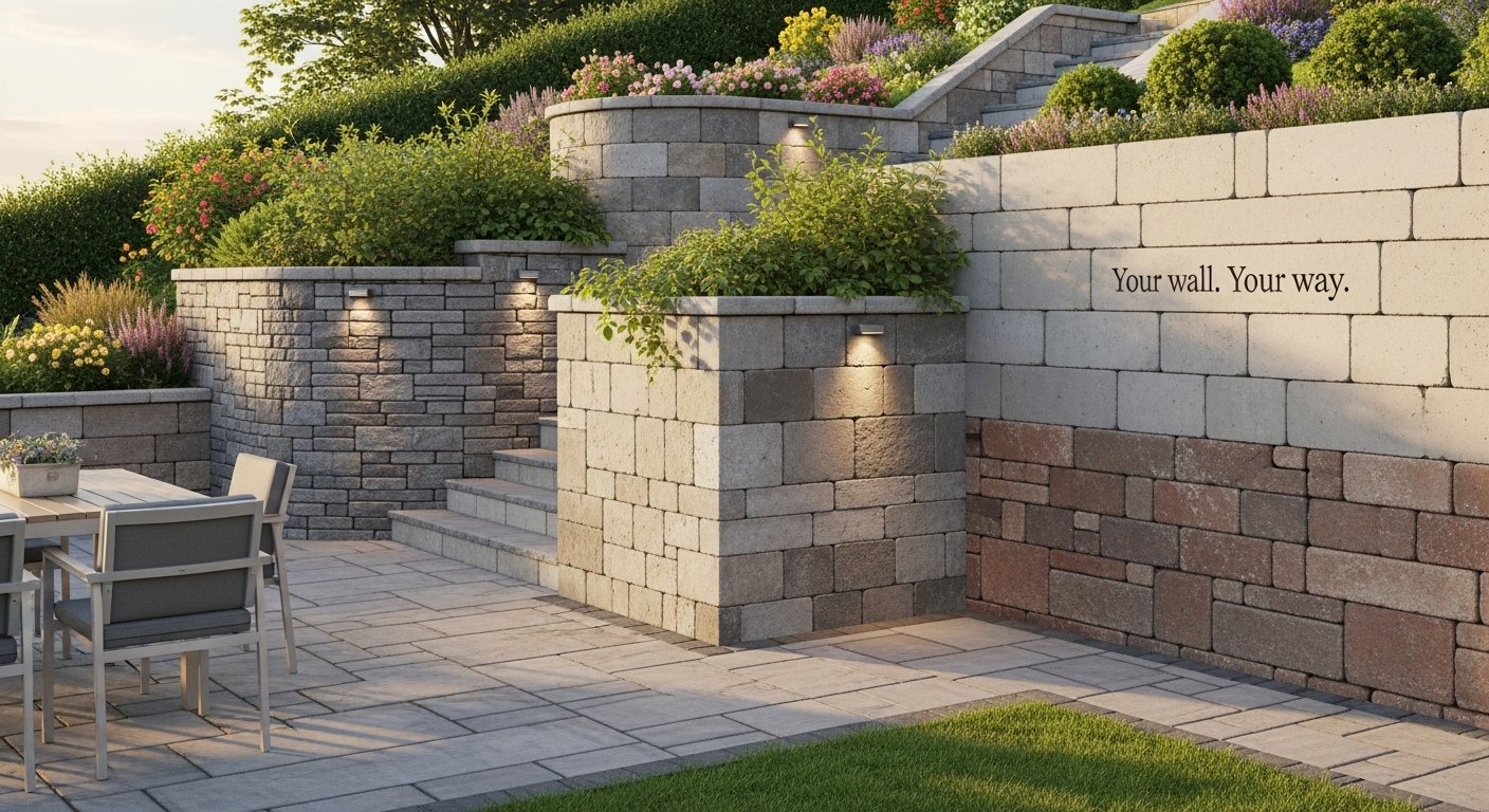 Our design experts at Loonscape will guide you in choosing the ideal shape, size, color, and finish to suit your personal style—whether you prefer a rustic, modern, or classic look. From stabilizing slopes to building garden terraces or defining outdoor living areas, we offer a variety of modular wall systems tailored to your needs.